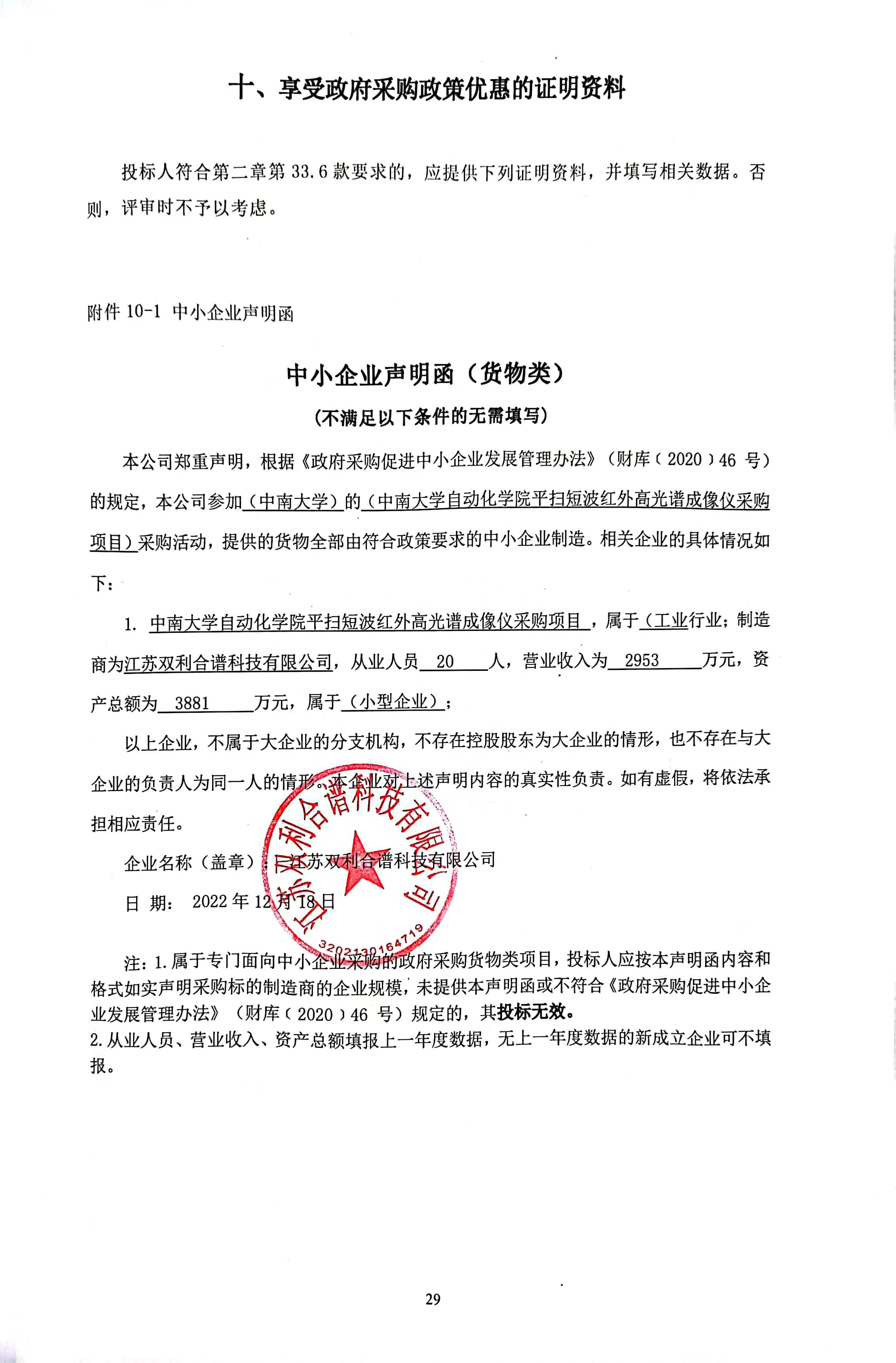 项目名称:中南大学自动化学院平扫短波红外高光谱成像仪采购项目